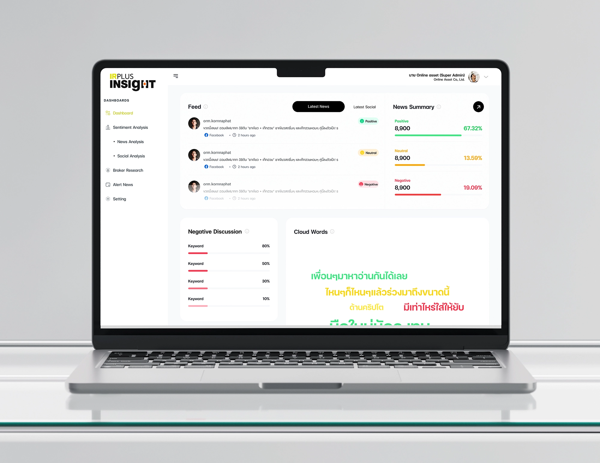 We focused on simplifying complex data through a user-centric design approach, transforming diverse information sources into a clear and structured dashboard. Key insights were visualized using intuitive indicators and filters, allowing users to quickly assess sentiment, track trends, and drill down into specific media sources. The interface was designed to be responsive, scalable, and easy to navigate—supporting efficient monitoring and informed decision-making.